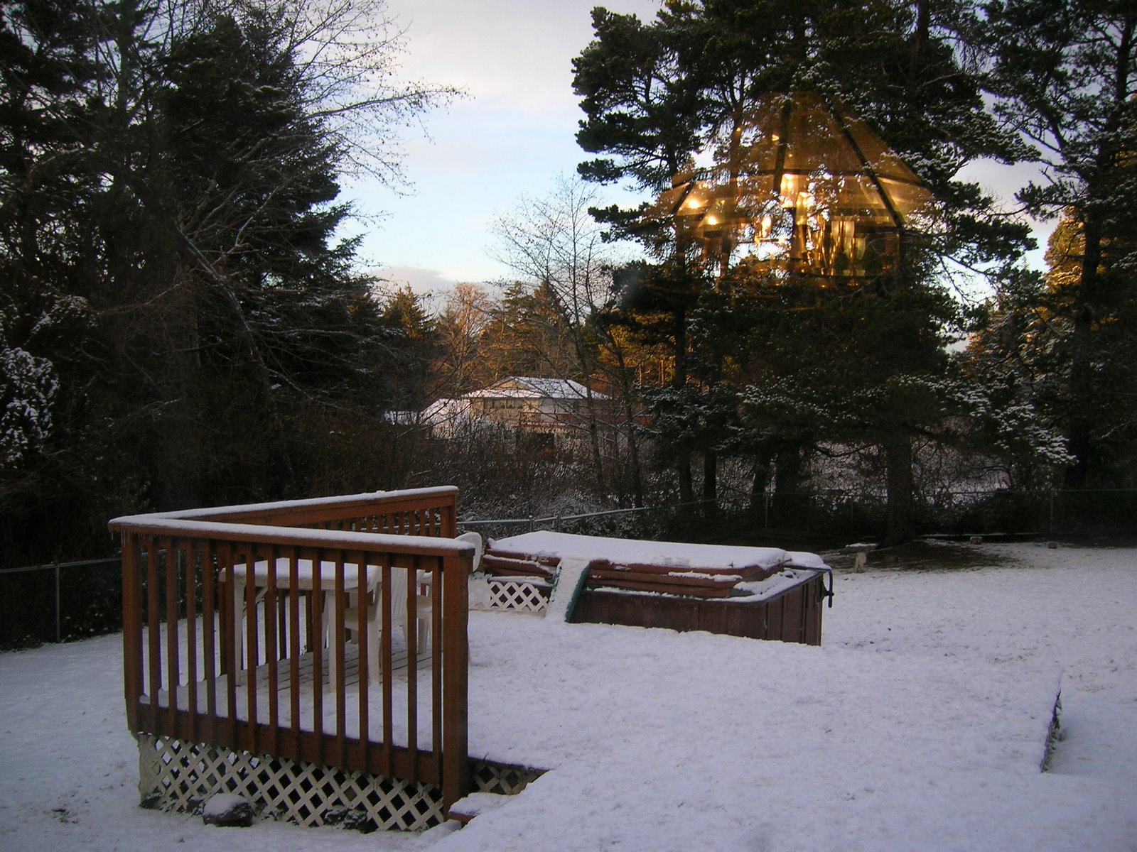 After whining about the snow here in South Beach, known for surfing not skiing, I received my stepson’s happy reaction to the white stuff in Portland by e-mail and decided to stop watching the disaster reporting on TV and embrace the weather. I put on my thermals and boots, stocking cap, gloves and heavy coat and went out with the dogs. I laughed as they pawed at the snow and ate chunks of it as if the yard were a giant snowcone. I savored the crunch of my boots on the snow, tested the top powdery layer, the brittle frozen center and the solid ice at the bottom and measured the depth with a ruler: approximately two inches. I snapped endless photos and threw snowballs for the dogs to chase. I let my inner child out to play.