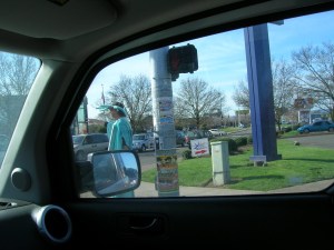 On my long drives to and from Salem last month, I saw some amazing things. One of the wildest was a guy dressed up like the Statue of Liberty. He was advertising a tax preparation service. I had stopped at a light on Lancaster, and there he was. By the time I got my camera out, he had almost moved out of frame, but if you look closely, you’ll see him all in green.