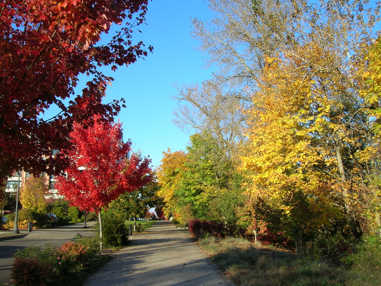 Halloween brought lots of color to the neighborhood over the weekend. Traveling through Corvallis, I happened upon parades of little ones dressed as everything from Spiderman to Lady Gaga, but what really caught my eye were the trees along the Willamette River. Their fall colors beat anything you could buy in a store. Today as a storm turns everything wet and gray, it’s nice to look back on the brightness of western Oregon’s maples, alders, dogwoods and other deciduous trees that light up the sky. These photos are mine, but if you want to see more, visit Oregon Fall Foliage. This site, sponsored by Travel Lane County, offers regular updates on where to see fall colors. Go quickly. Winter is blowing the furniture around on my deck as I write.