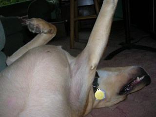 To my amazement, my big nervous mutt stood calmly as I wet and soaped and rinsed her body, even her private parts and her head. She may even have liked it. I know I did. Quality time with the pooch, washing away her troubles (I hope). When she was clean, I rubbed her dry with a big towel much thicker and more absorbent than any of the towels I own. Afterward, she nibbled dog treats while I paid $10. Now my dog smells good, her fur is soft, and she’s scratching much less. That night, feeling better, she relaxed into a deep sleep in my lap. Such a deal. Moondoggy rules. THAT’S how to wash a dog.