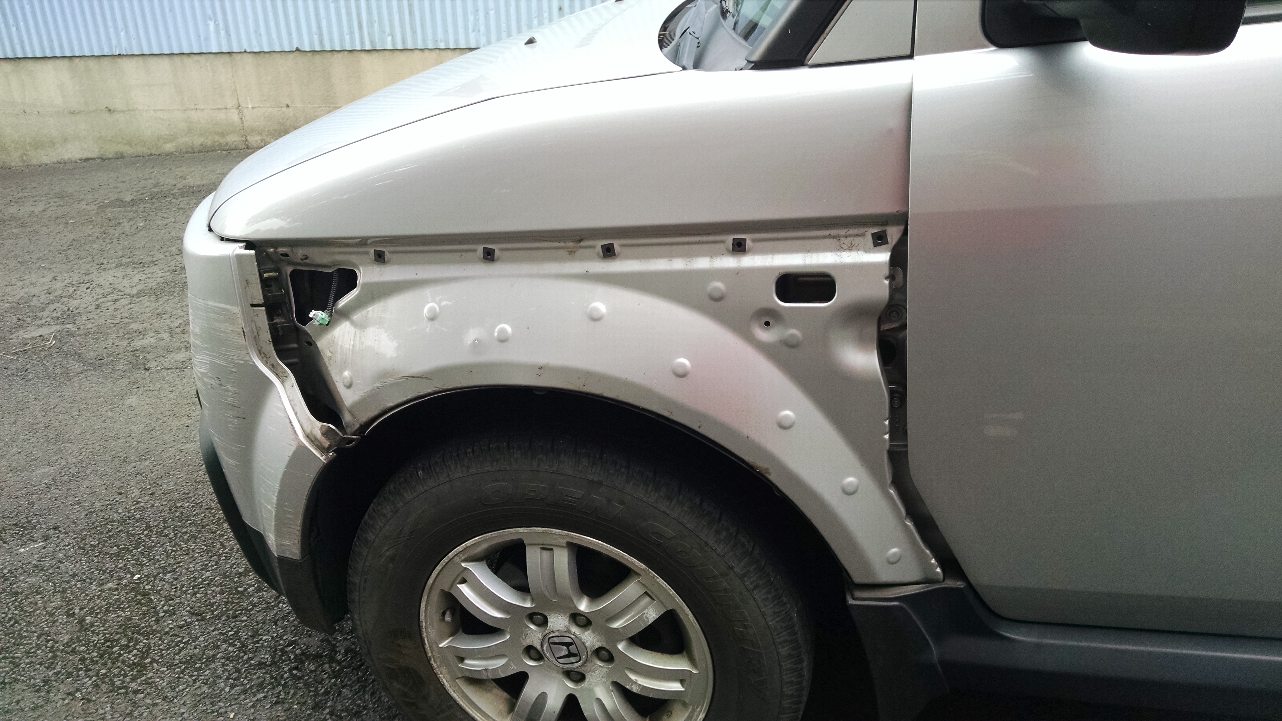 The front of the passenger side of her car was smashed, the headlight in pieces, wires and such dangling, radiator leaking. My back bumper was damaged. But where did the piece of car lying on the pavement come from? Big piece. It took me a while to figure out it came from the front, where the real damage was, where I ran into a metal post.