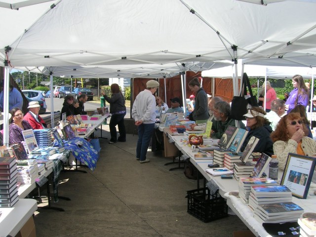 Those who predict the demise of books should have been at the Northwest Author Fair in Lincoln City, Oregon on Saturday. I joined 49 other authors packed into long tables outside Bob’s Beach Books to sell our books, schmooze with potential customers and network with other authors. My table happened to be next to the cash register. People were lined up buying stacks of books all day. Not necessarily my books . . . but books.