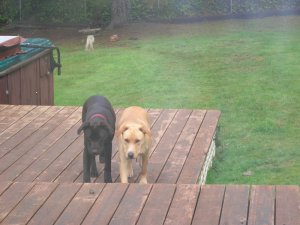 But Oregonians are tough. They know that if they don’t work in the rain, nothing will get ever get done. As I type, the concrete guys are back. A couple days ago, these bold gentlemen in their slickers dug out the mud and scraps of lawn in the shady side of the new dog enclosure to prepare for the concrete. Now they’re laying strips of metal within the wooden forms and getting ready to pour, even though it’s raining sideways. If the rain continues, the slab will be stippled with raindrops. It seems appropriate.