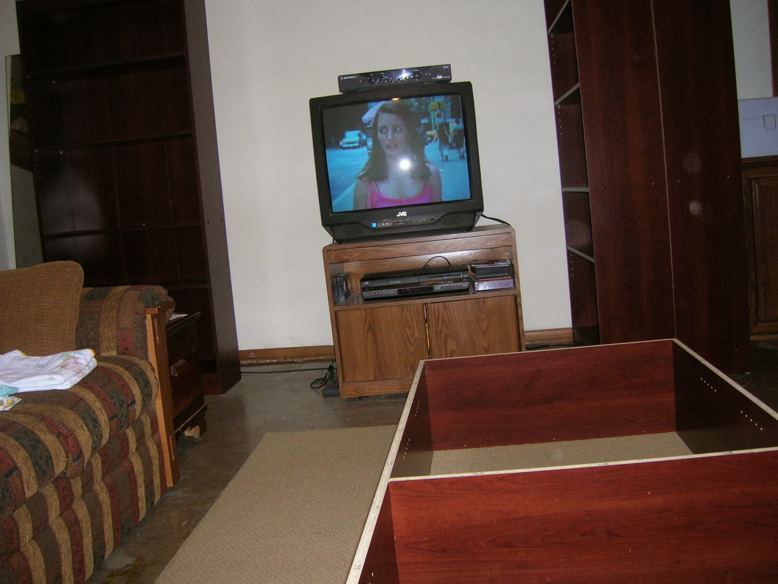 | Bookshelves in progress, accompanied by a “Sex and the City” marathon. |