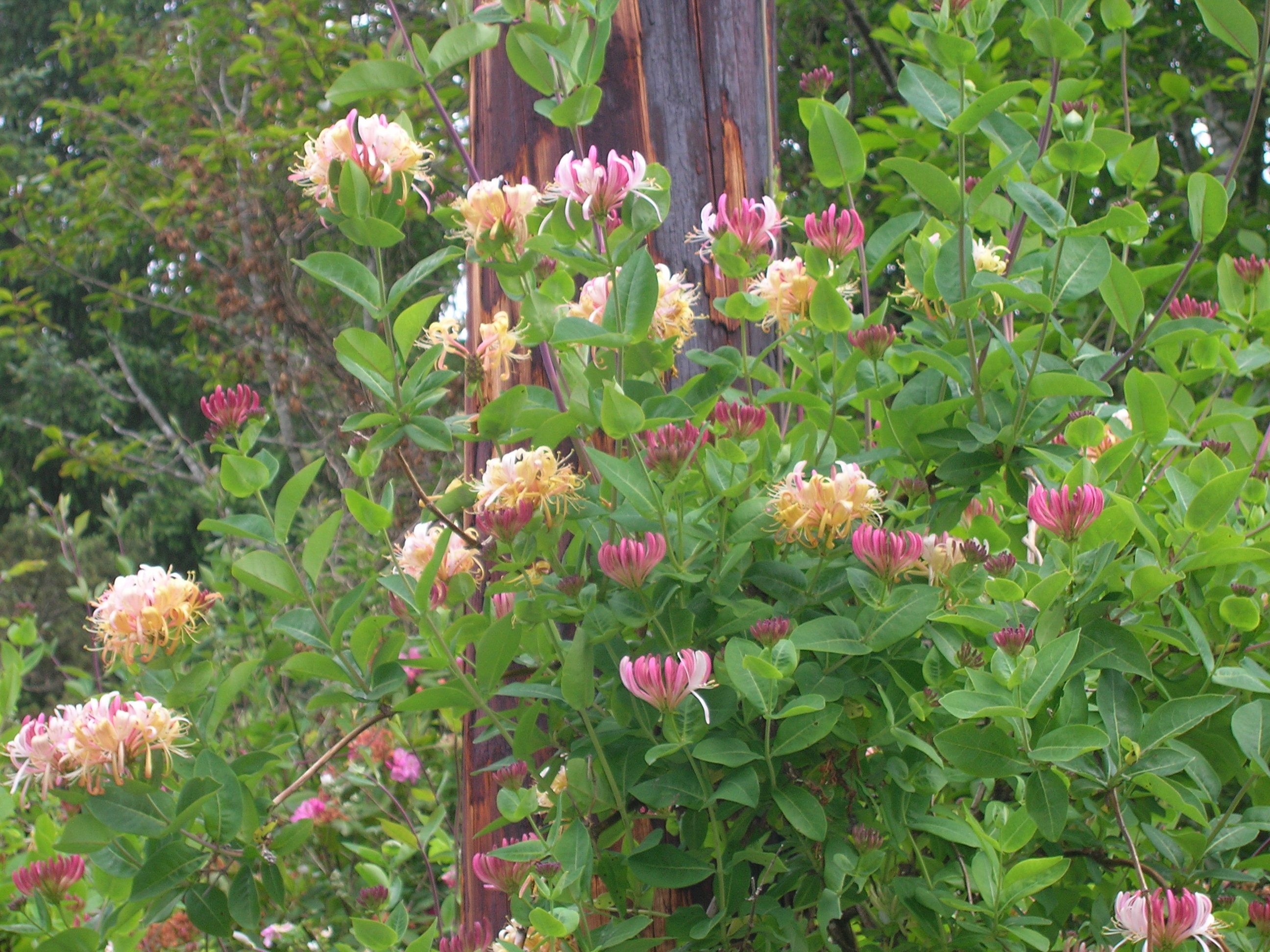 I spent a lot of the Fourth of July weekend in hand to vine combat with wild berries. I believe in letting wild things grow, but when they attack my house and make it difficult to walk through the yard, I have to attack back. My garden pretty much consists of plants that planted themselves. Invasive plants, the rest of the world calls them, plants that grow wherever they want and keep expanding their territory. Blackberries, thimbleberries, salmonberries, huckleberries. Salal, sword ferns, foxglove, poppies, ivy. And honeysuckle. Just when I learn what those flowers are and start thinking I’m lucky to have them, I discover that they too are invasive plants. Looking more closely, I see that they’re already battling for space with the berries out front.